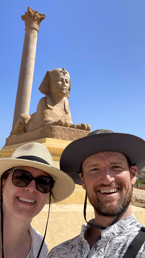 Today, we took the “Best of Alexandria” tour. We walked through the catacombs of Kom El Shoqafa. We then took a short ride to Pompey’s Pillar, which actually honors Diocletian, and the Roman Amphitheater.
