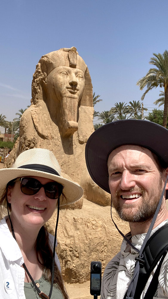 In Memphis, once Egypt’s capital, we saw the Colossus of Ramses II (lying down on the job, tbh)We also saw the beautiful Alabaster Sphinx. The tour promised the Temple of Ptah ruins, but we couldn’t find them…